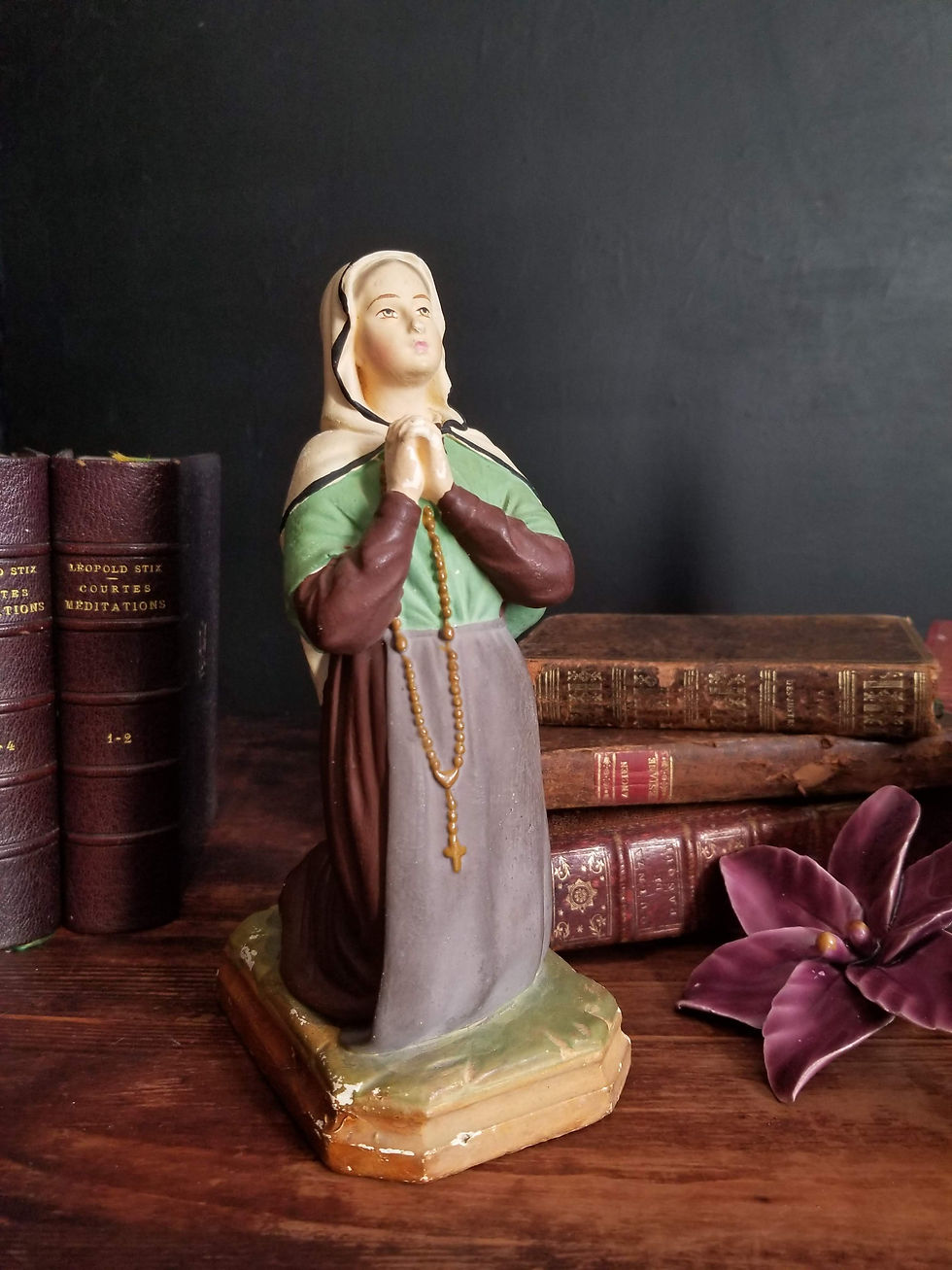 Statuette en plâtre peint de Bernadette Soubirous.